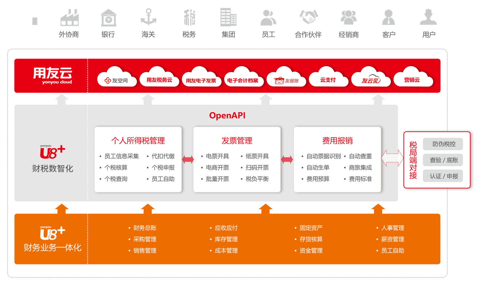 財稅工作是企業(yè)管理工作的核心,新政策不斷變化、新技術層出不窮、新業(yè)務模式不斷更新,讓企業(yè)財稅工作面臨巨大的機遇和挑戰(zhàn)。用友以“實時會計+智能財務+精準稅務”為核心,并考慮社會化商業(yè)對企業(yè)財務的影響,為成長型企業(yè)在會計核算、財務管理、稅務管理和金融服務四個方面提供全新的一體化解決方案,滿足企業(yè)對信息化、智能化及專業(yè)化的全面管理訴求。為企業(yè)提供數(shù)字化財務服務,助力成長型企業(yè)構建連接/融合/云端/智能的財務云平臺,開啟智能財務新時代,創(chuàng)造新價值。