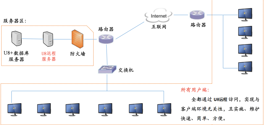 U8遠(yuǎn)程為企業(yè)提供了一種從中心點(diǎn)集中管理應(yīng)用程序遠(yuǎn)程接入方法??梢宰悴怀鰬敉瓿蛇h(yuǎn)端的U8功能操作。